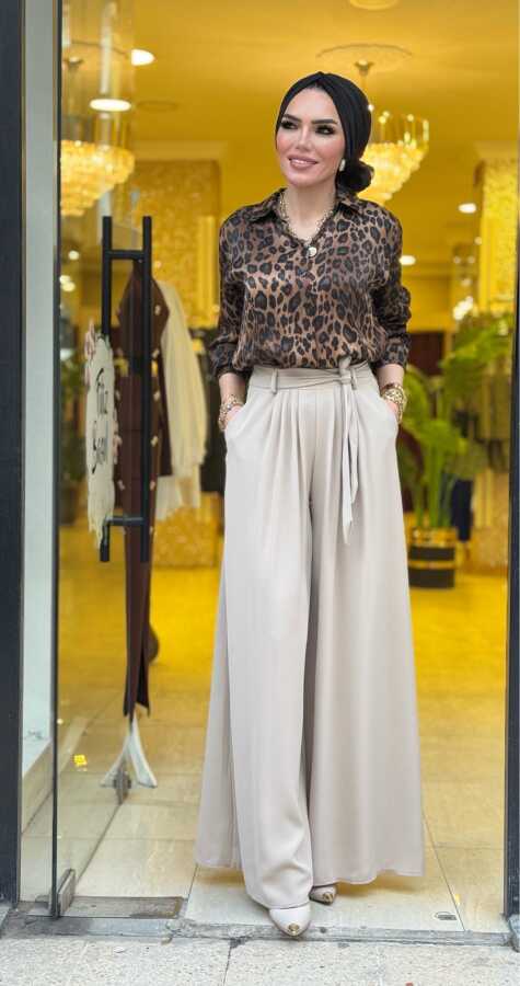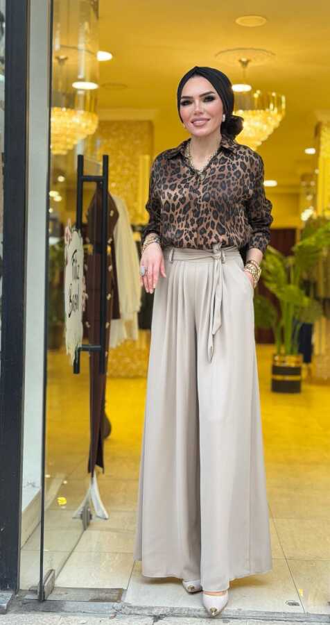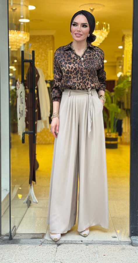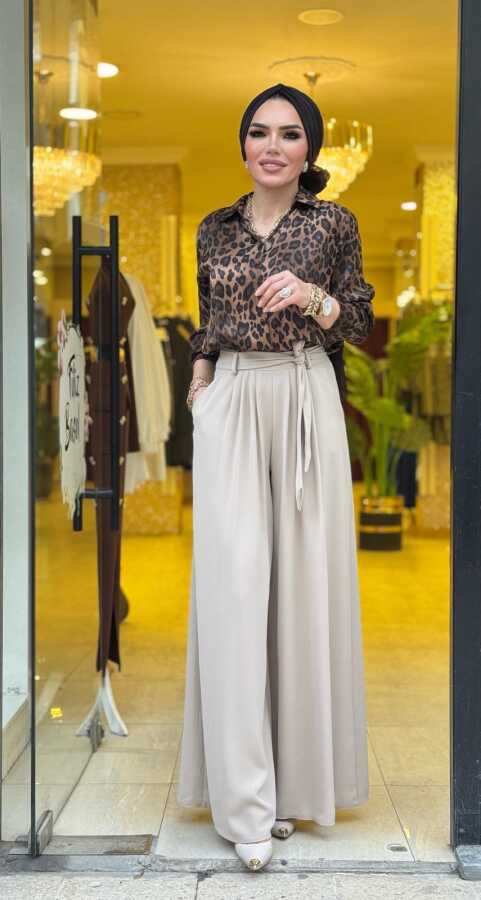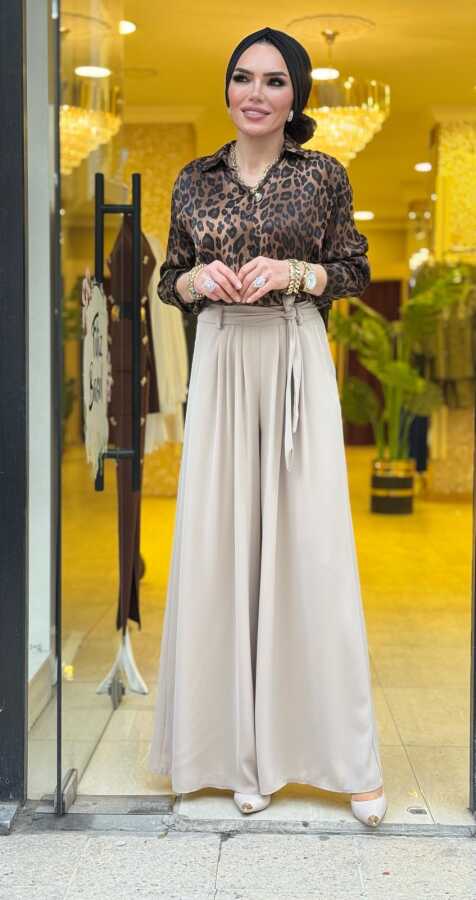 1072 NİSA BOL PAÇA PANTOLON TAŞ