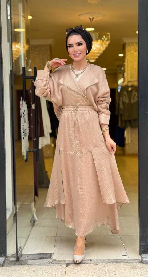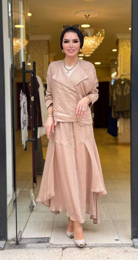 1460 SİMETRİ ETEKLİ TAKIM CAMEL