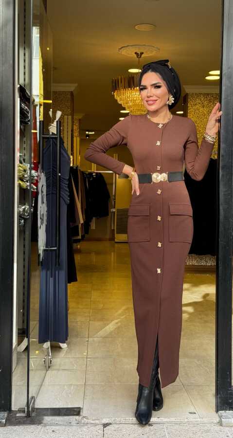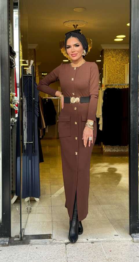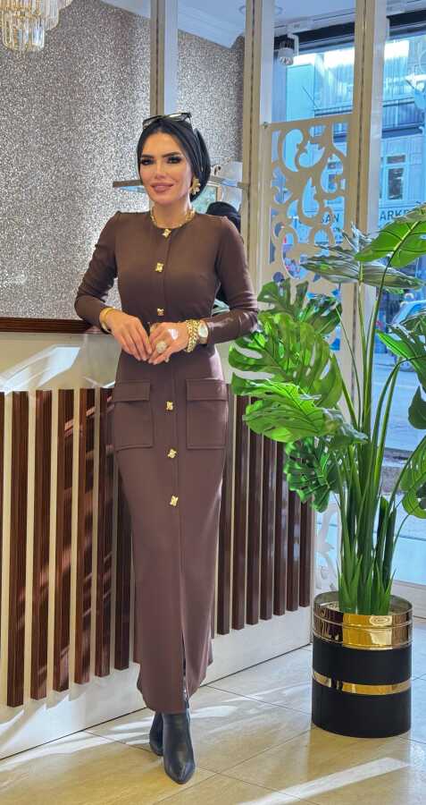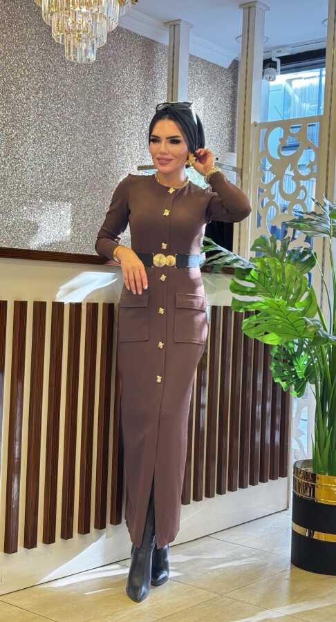 1706 ÖZGE ELBİSE KAHVERENGİ
