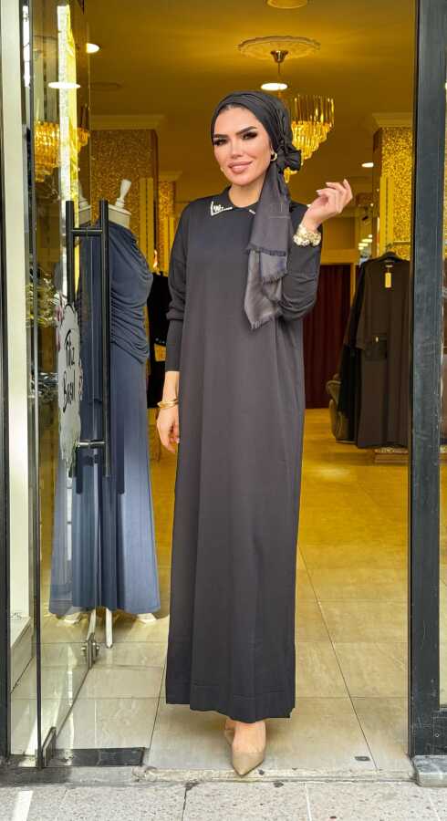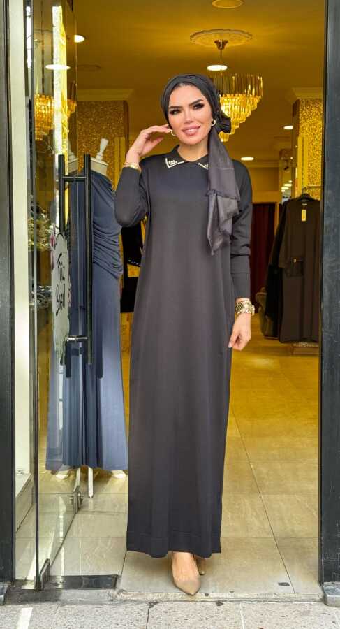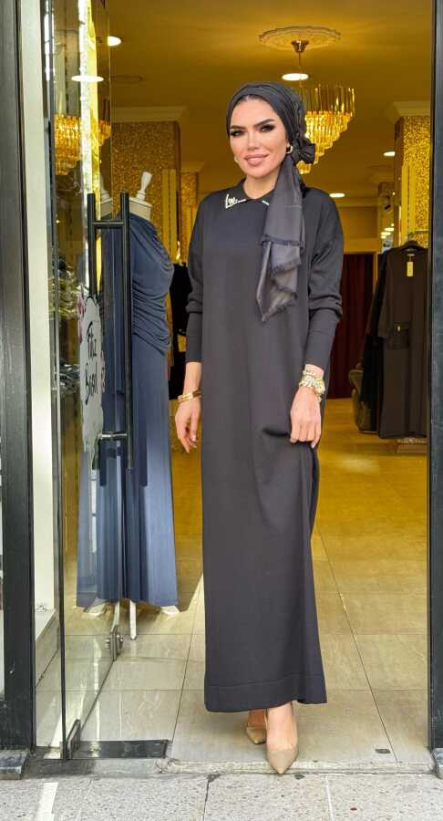 1981 YAKASI TAŞLI ELBİSE SİYAH