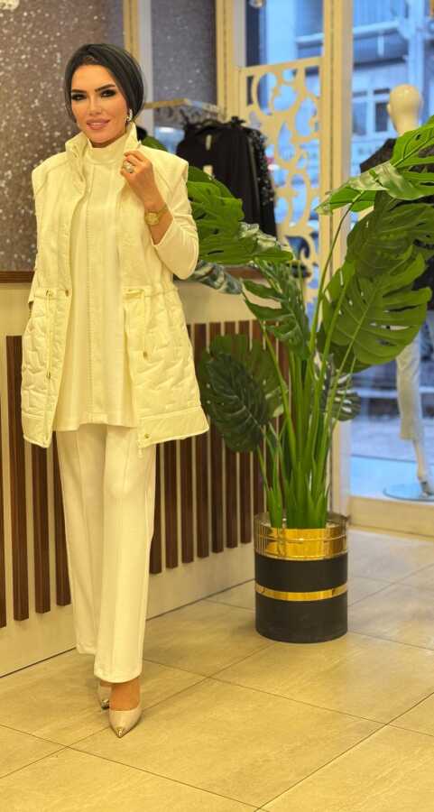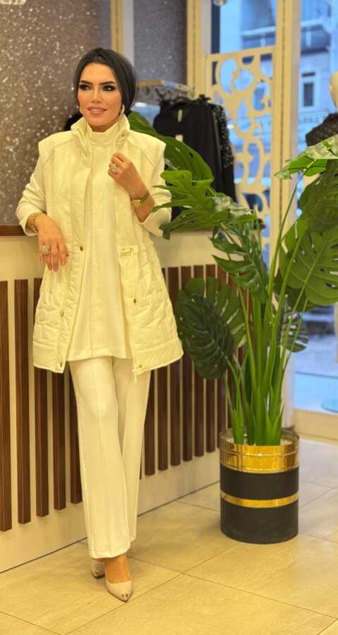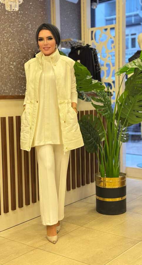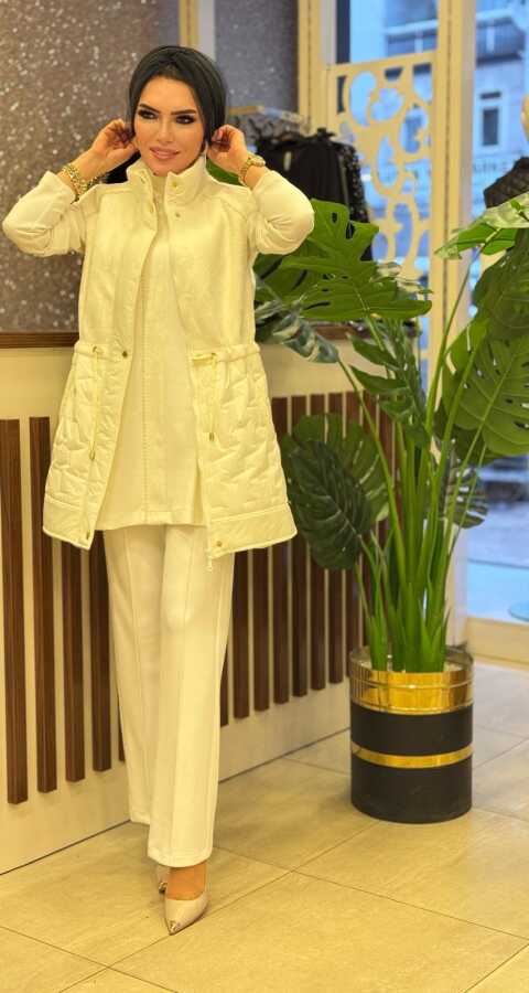 2929 KAPİTONE YELEKLİ TAKIM BEYAZ