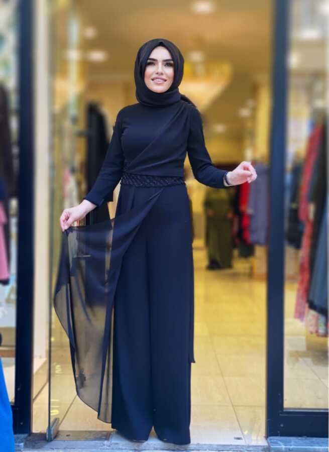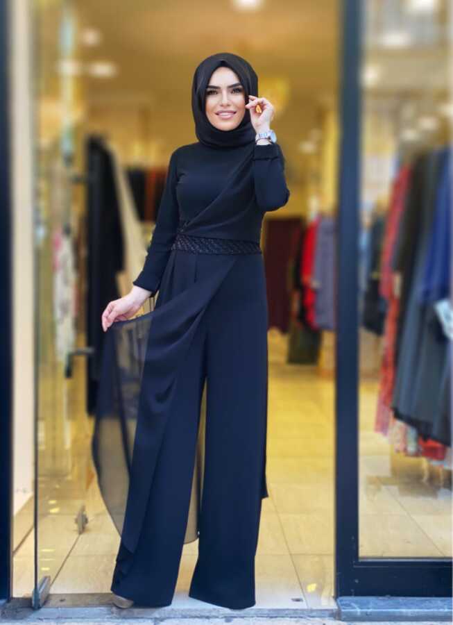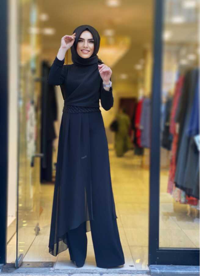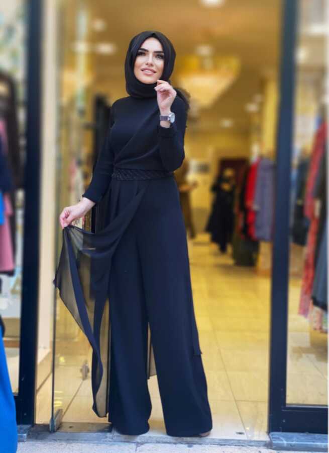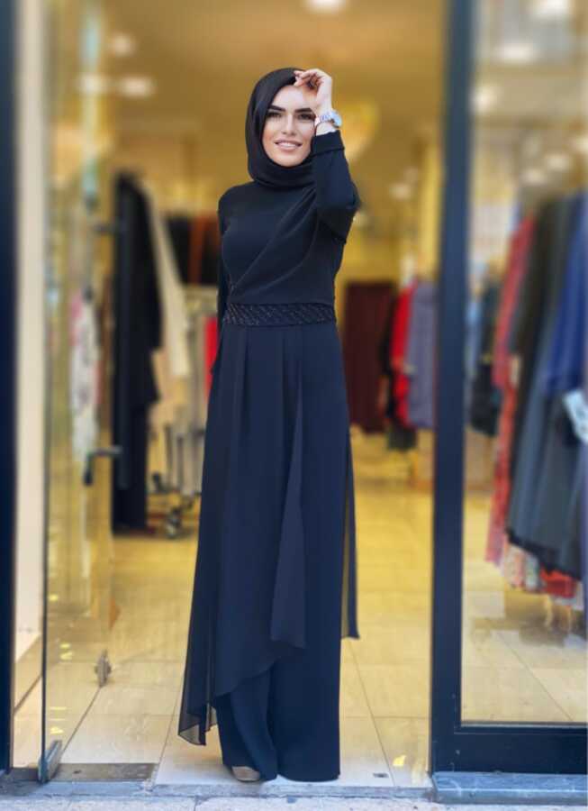 3054 ŞİFON DETAYLI TULUM SİYAH