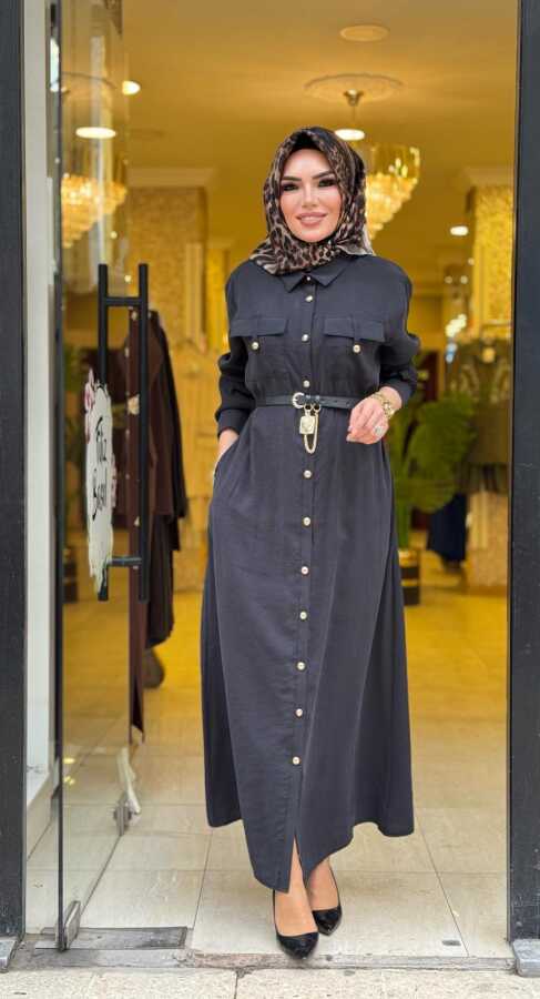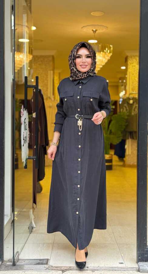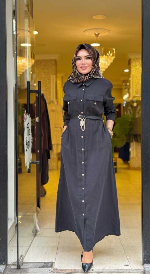 31016 ÇAĞLA KEMER KİLİT DETAYLI ELBİSE SİYAH