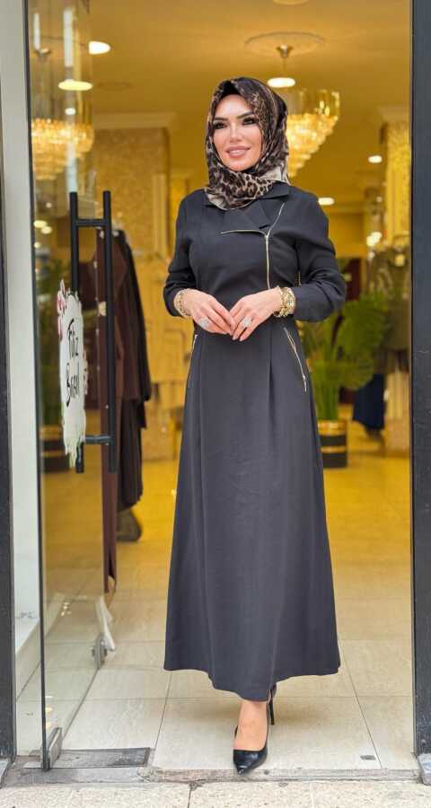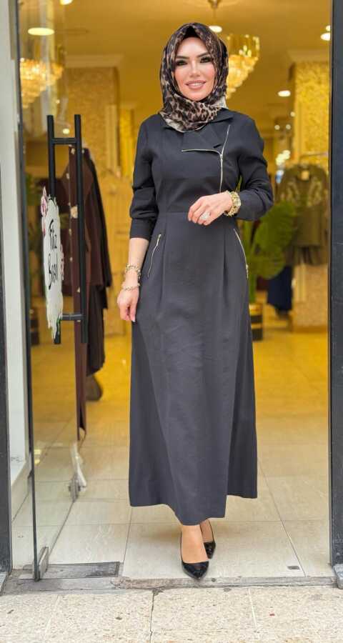 31183 GİZEM YAN FERMUARLI ELBİSE SİYAH