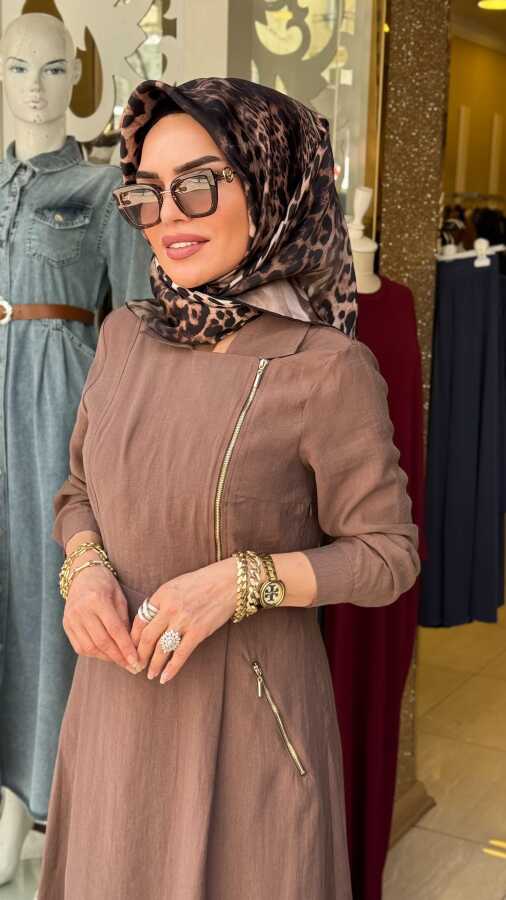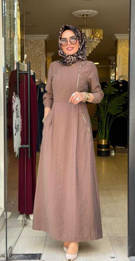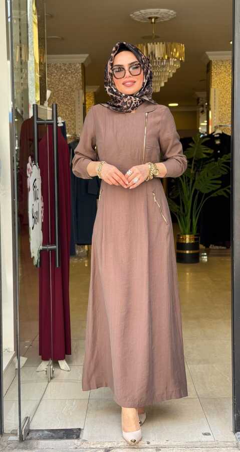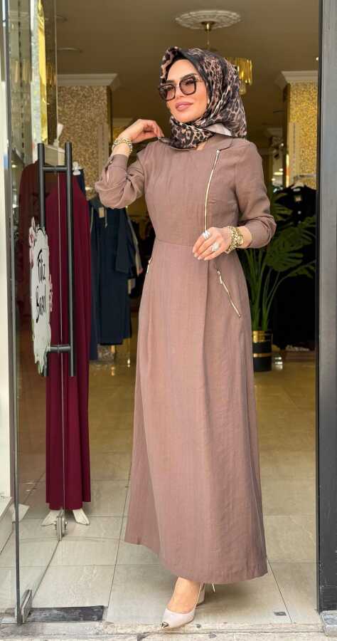 31183 GİZEM YAN FERMUARLI ELBİSE KAHVERENGİ