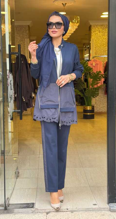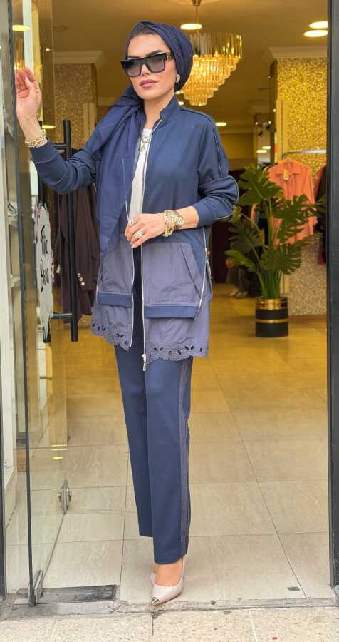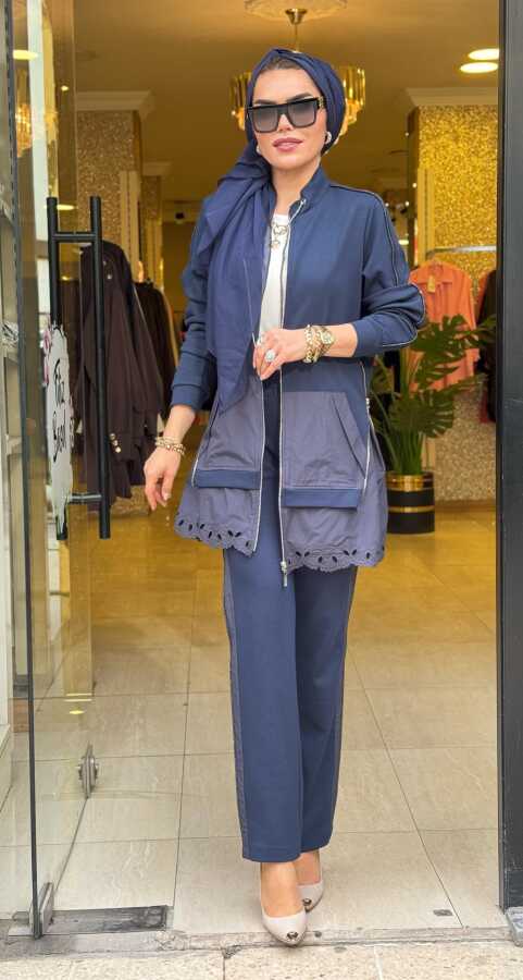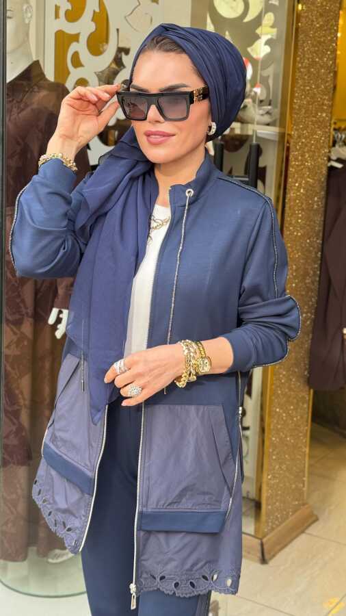 0890 TENSEL ETEKLİ TAKIM FERMUARLI KOYU MAVİ
