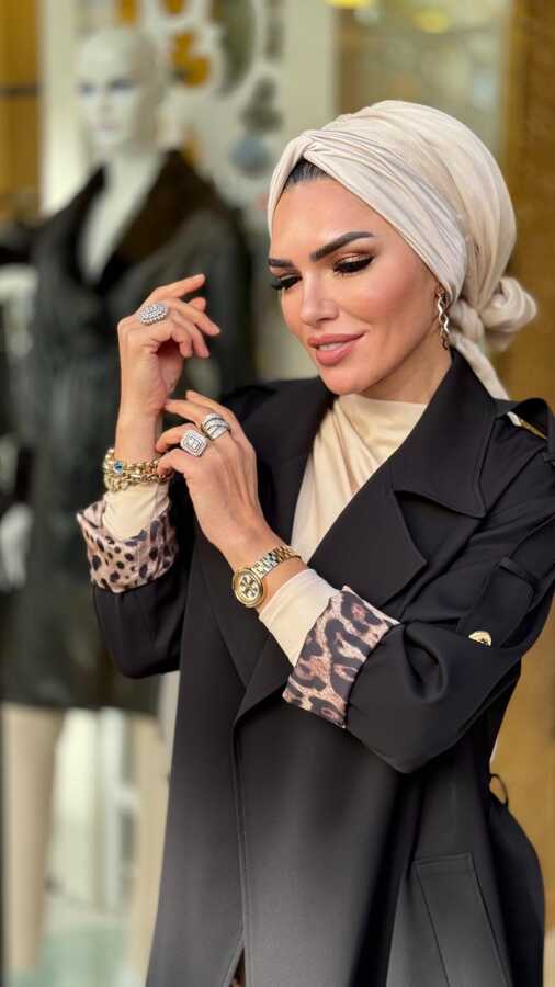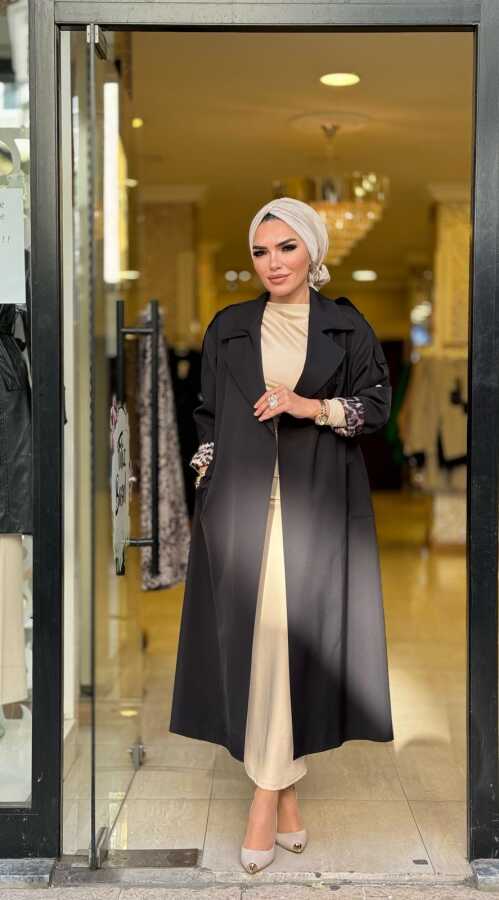 4544 ASTARI LEOPARLI TRENÇ SİYAH