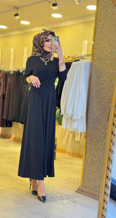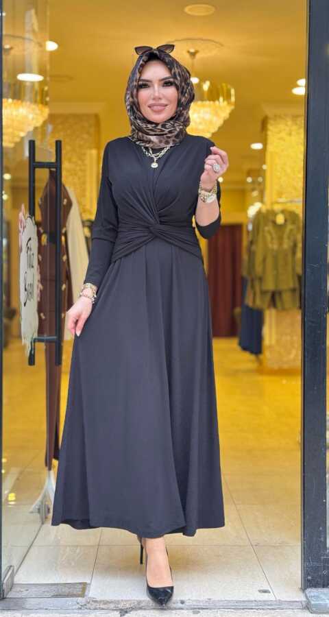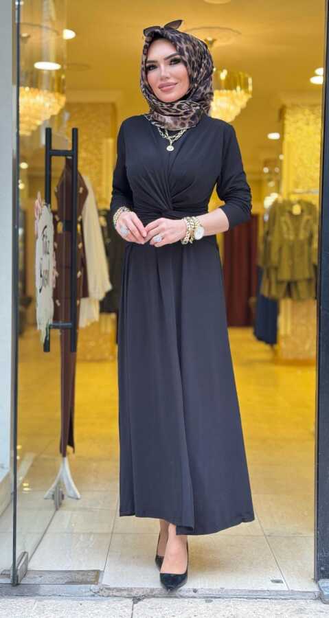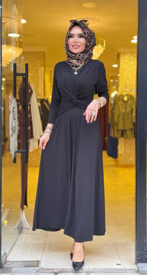 5475 ŞİRİN KRUVAZE GEÇMELİ ELBİSE SİYAH