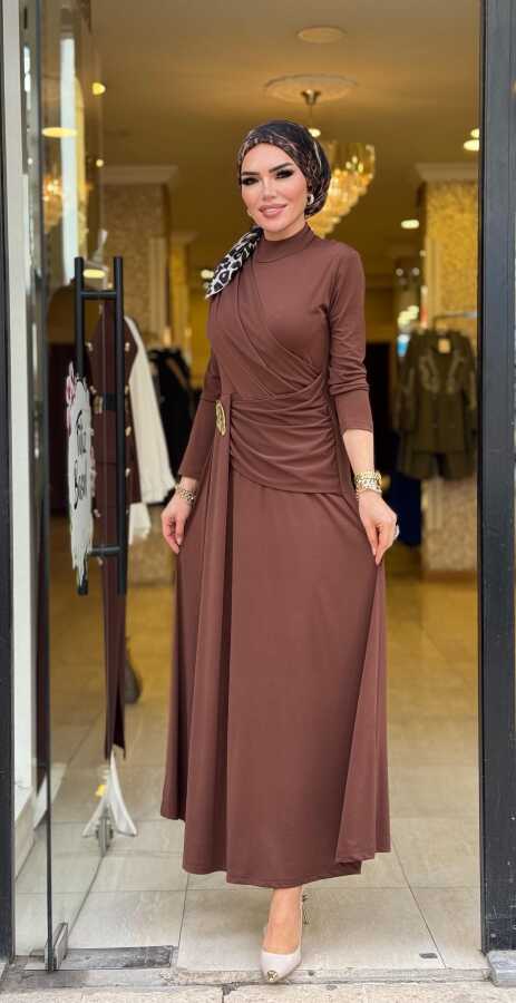 5491 SEHER TOKALI ELBİSE KAHVERENGİ