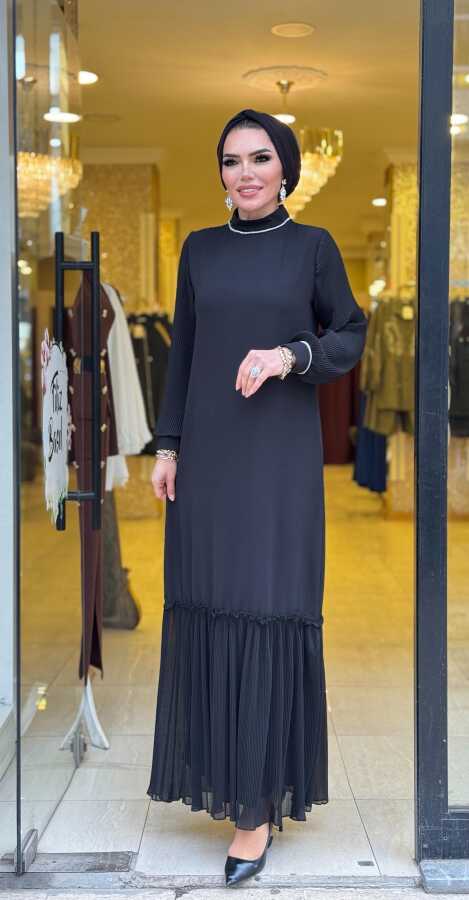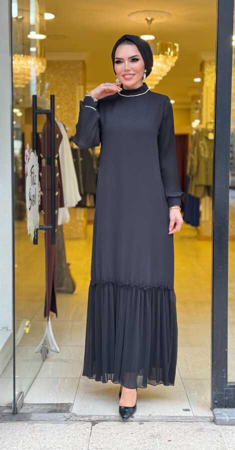 5508 ÇİÇEK PİLİSE DETAYLI ELBİSE