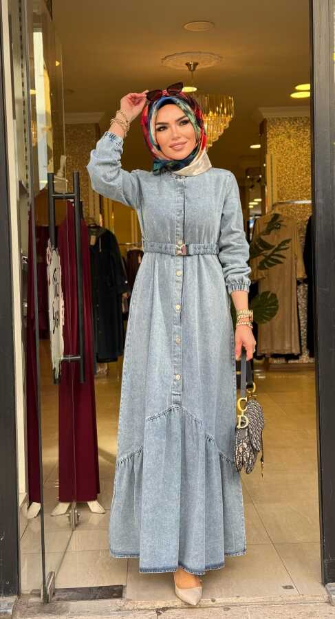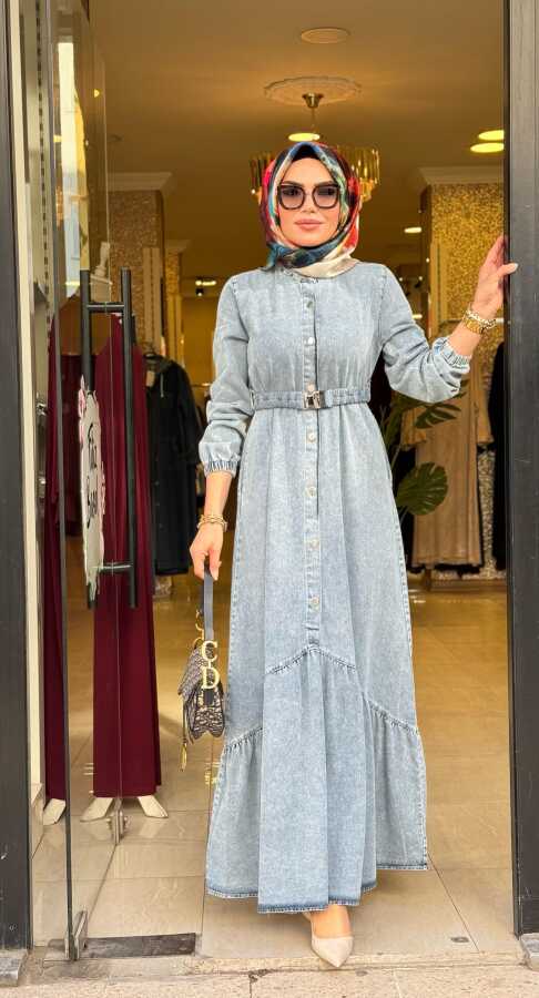 6135 NAZLI KOT ELBİSE AÇIK MAVİ