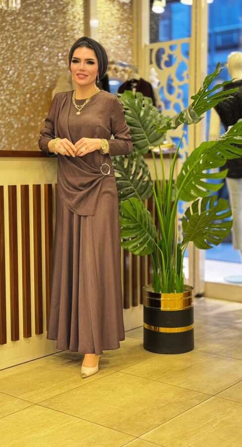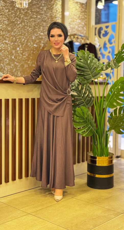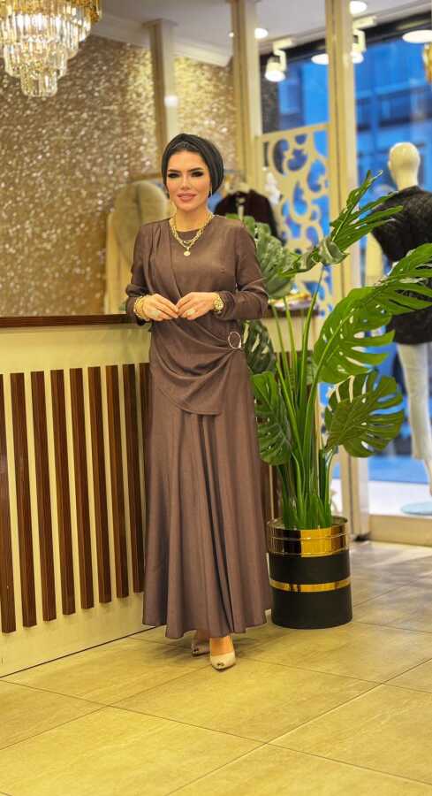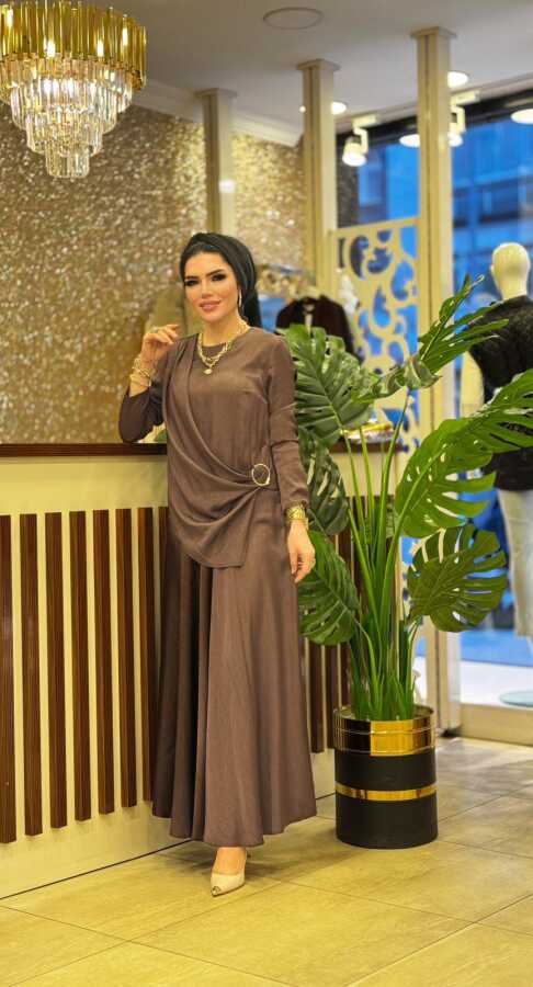 8602 HELİN ETEKLİ TAKIM KAHVERENGİ