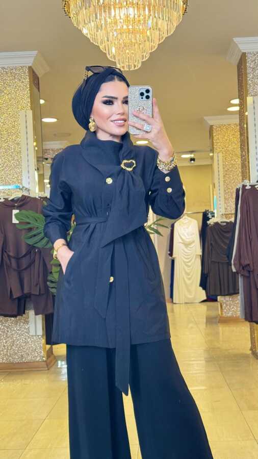 4544 ASTARI LEOPARLI TRENÇ SİYAH
